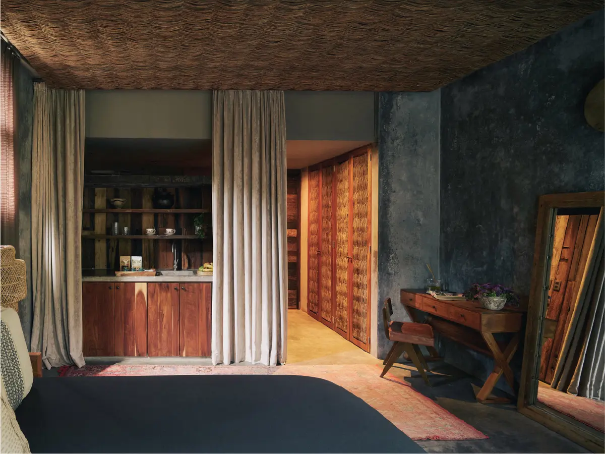 Our spacious Air Suite, thoughtfully designed on the second floor, offers a large bedroom with a king-size bed. Enjoy a private rooftop terrace with a pool, ideal for soaking up the sun during the day or relishing the sunset in the afternoon.